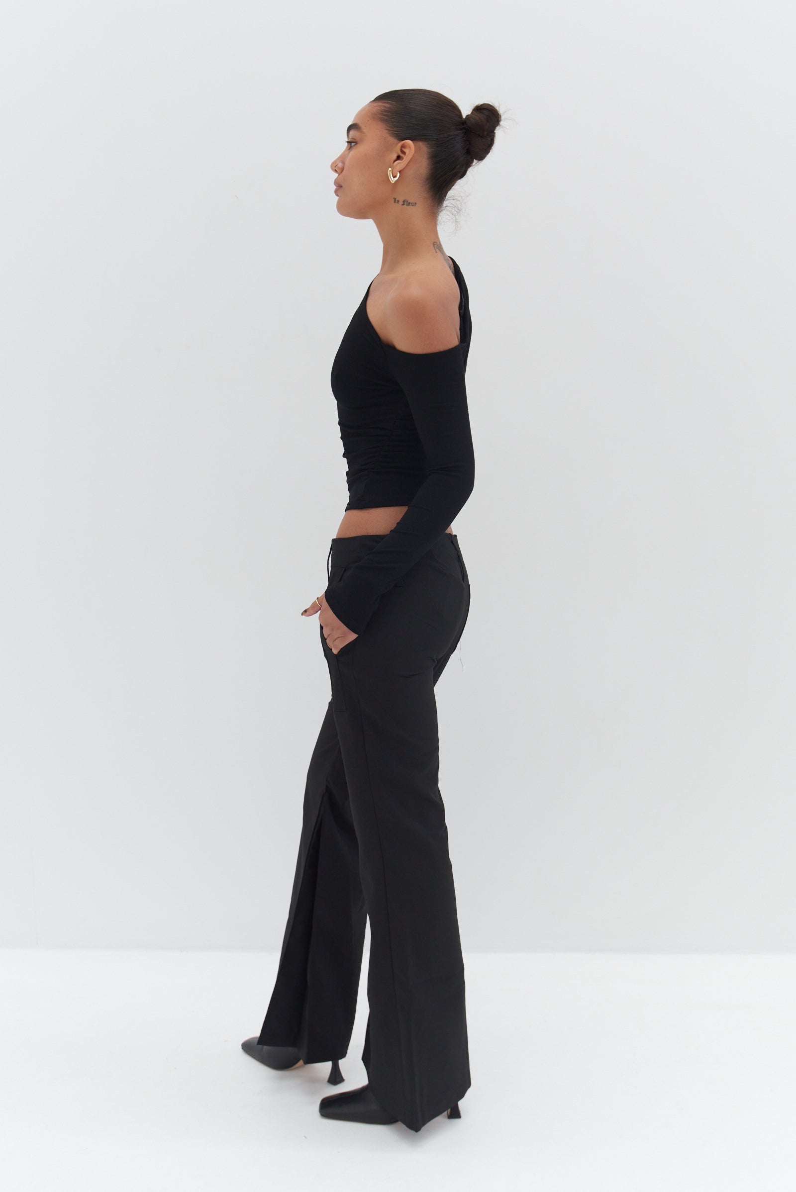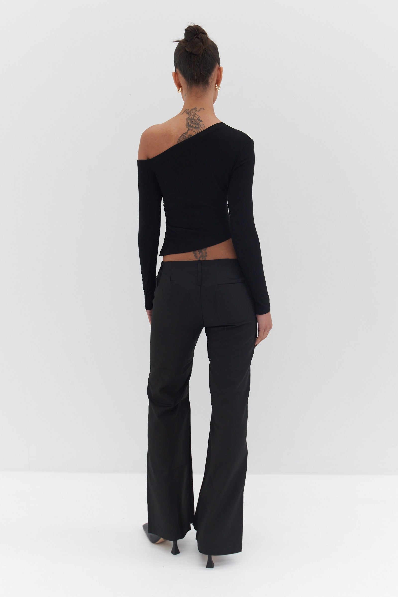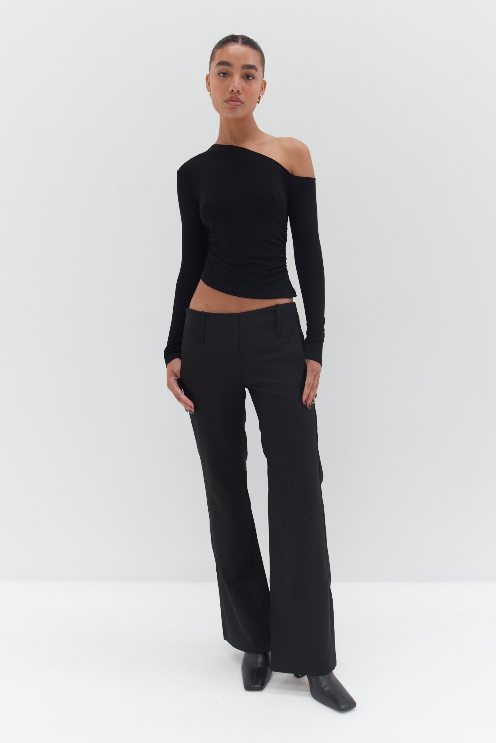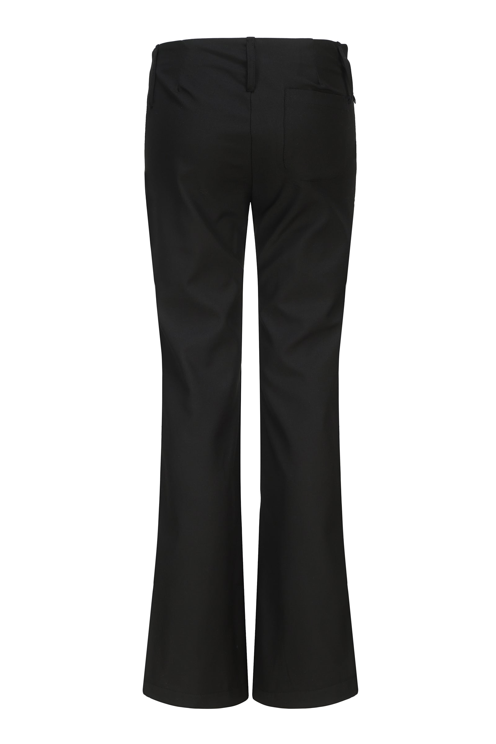 The Bonnie Trousers are designed with a low rise waist and wide belt loops. Featuring a back pocket and slightly flared leg.
