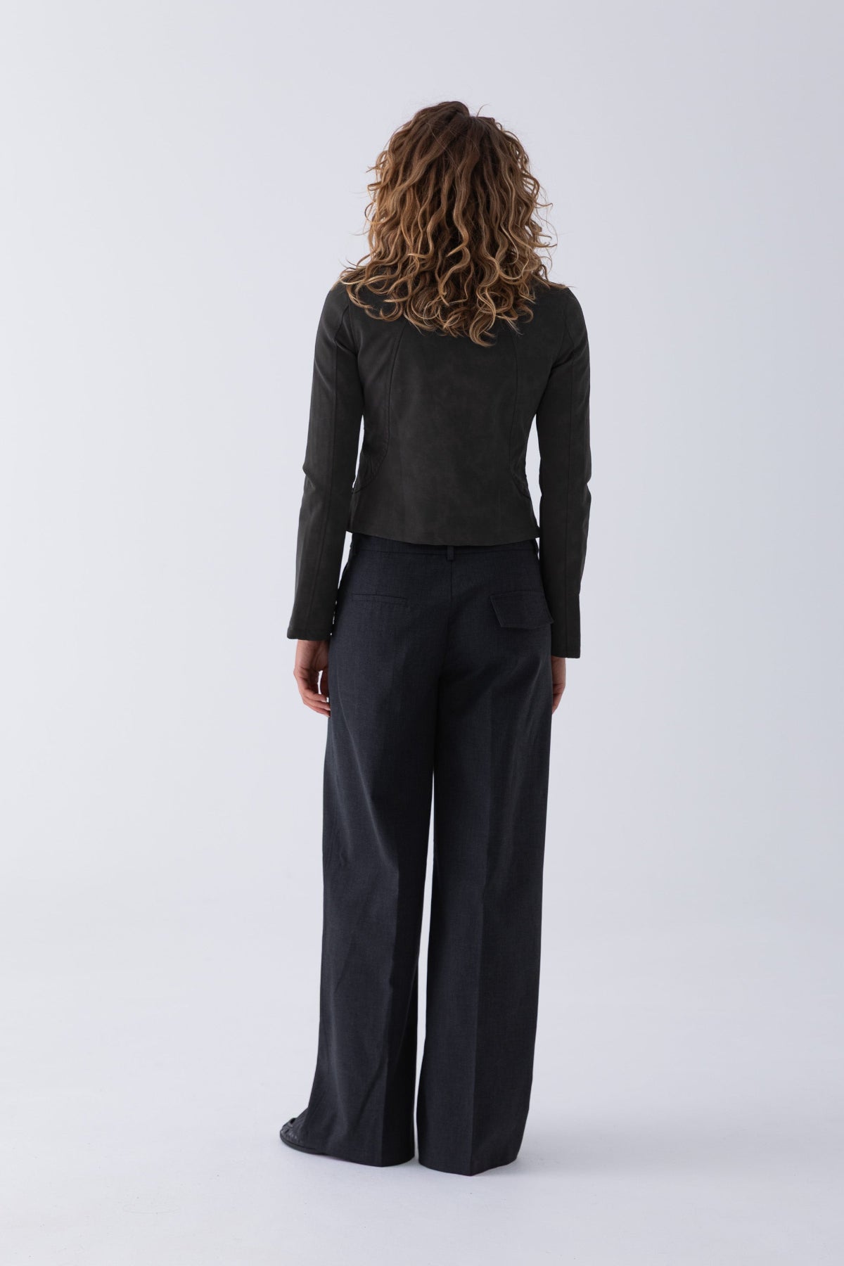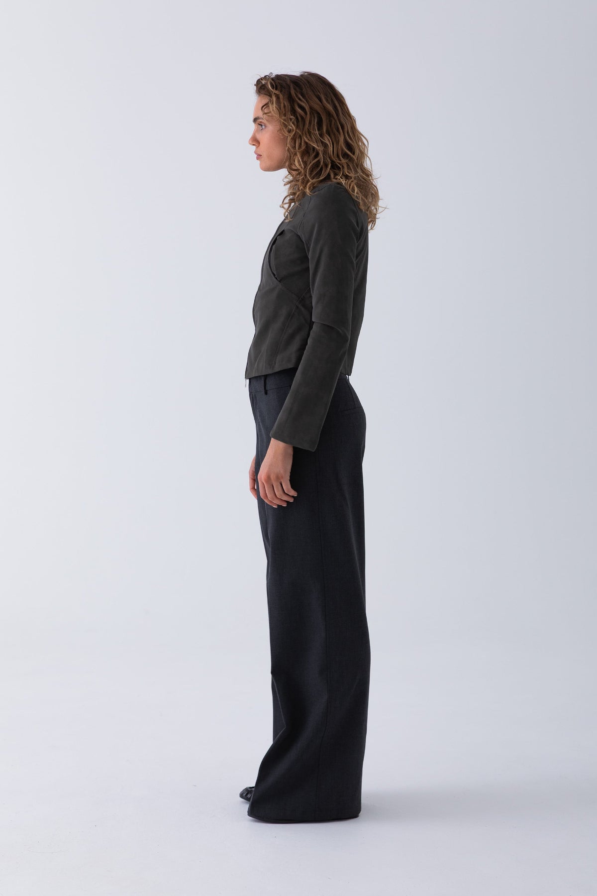 The Hayes Trouser is a softly tailored wardrobe essential. Designed with a flattering mid-rise and easy straight leg, this classic silhouette works back effortlessly with anything from fitted tanks to oversized shirts. Made from a structured suiting fabrication with subtle stretch for all-day comfort.