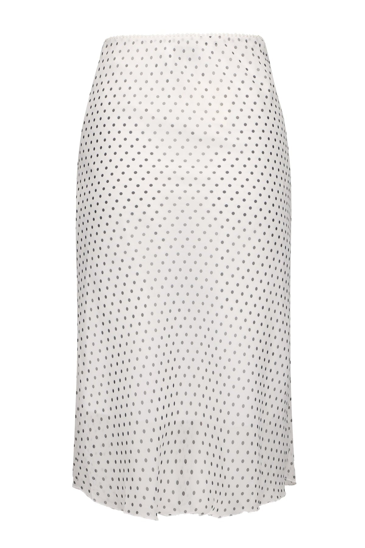 The Josette Skirt in White is the perfect addition to your wardrobe. Made with a knee length design, elasticised waist, and scalloped waist edge.