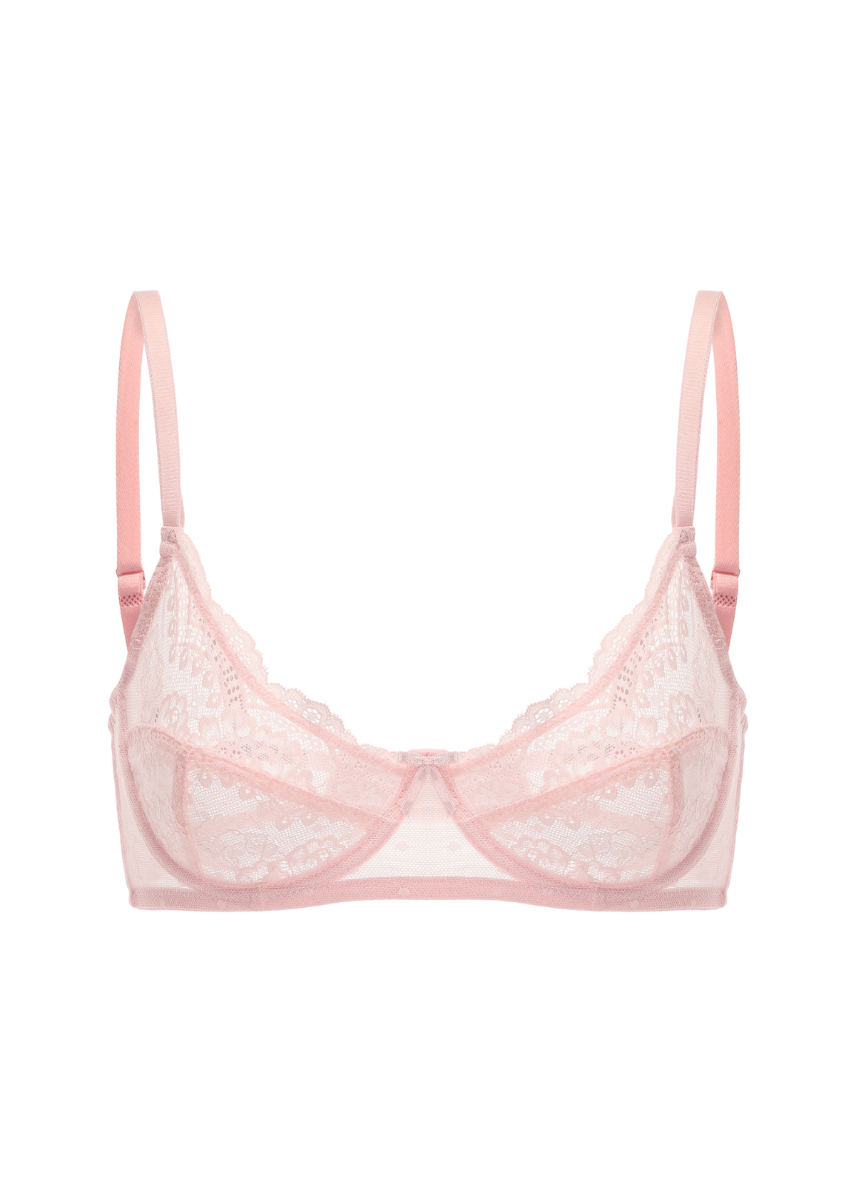 This pink Lace Balconette Bra features a delicate bow detail, supportive underwire, and sheer embroidered material. The adjustable straps provide a customizable fit and all-day comfort.