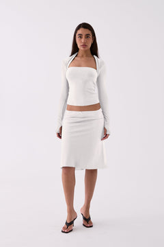 Inspired by 90's the Maidson Skirt feature a scallop waist, bow detail and full lining.