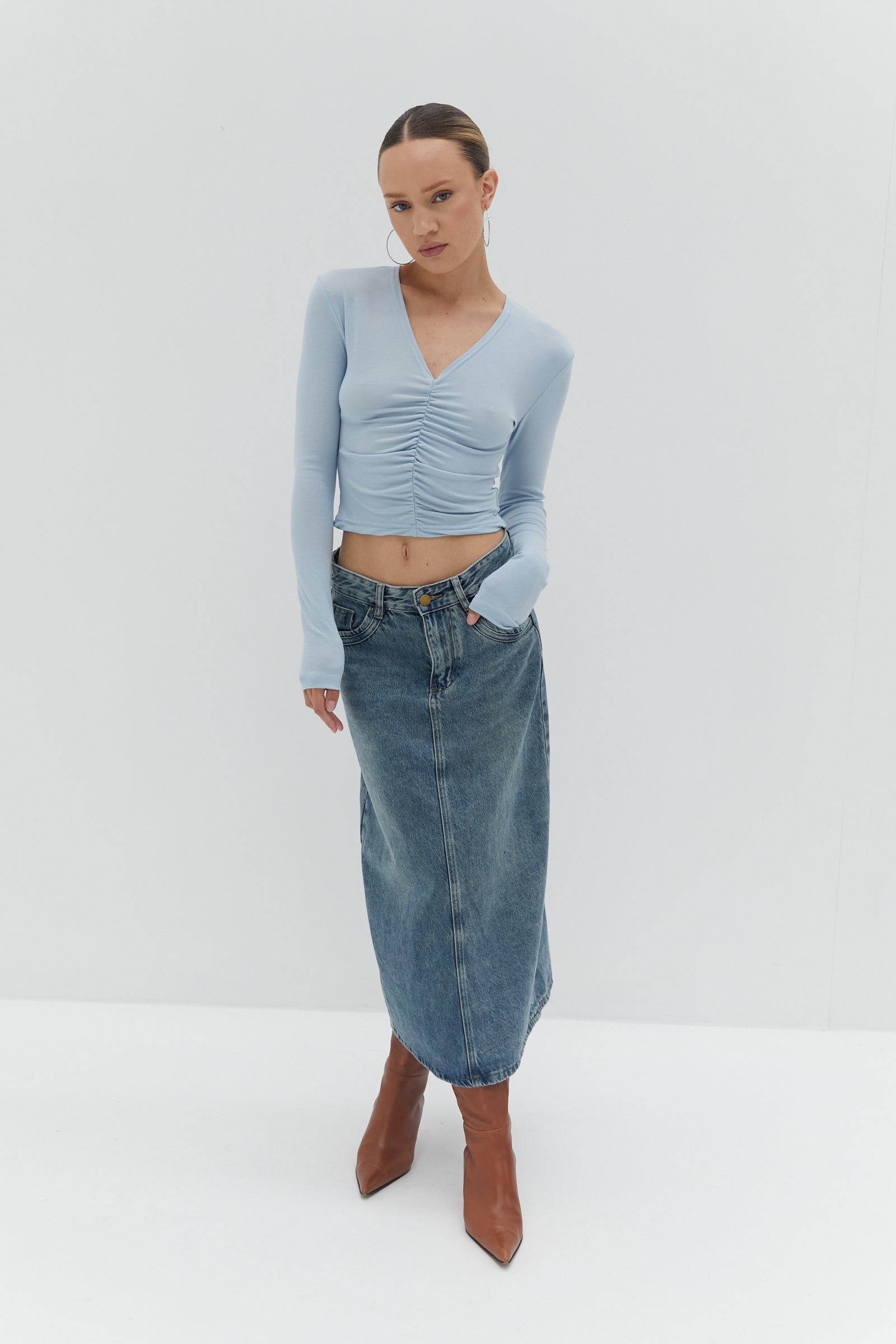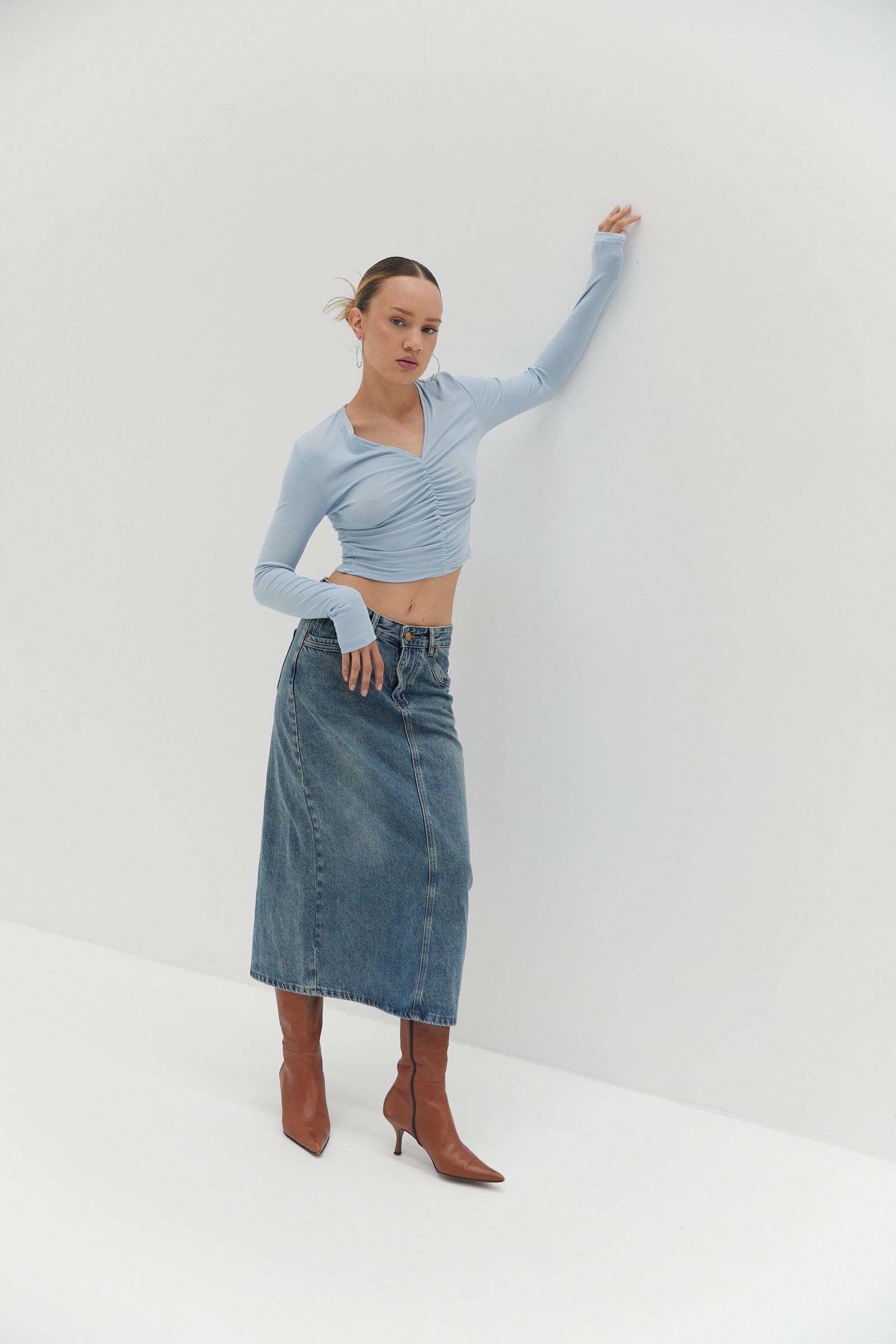 Nicole Denim Midi Skirt - Blue