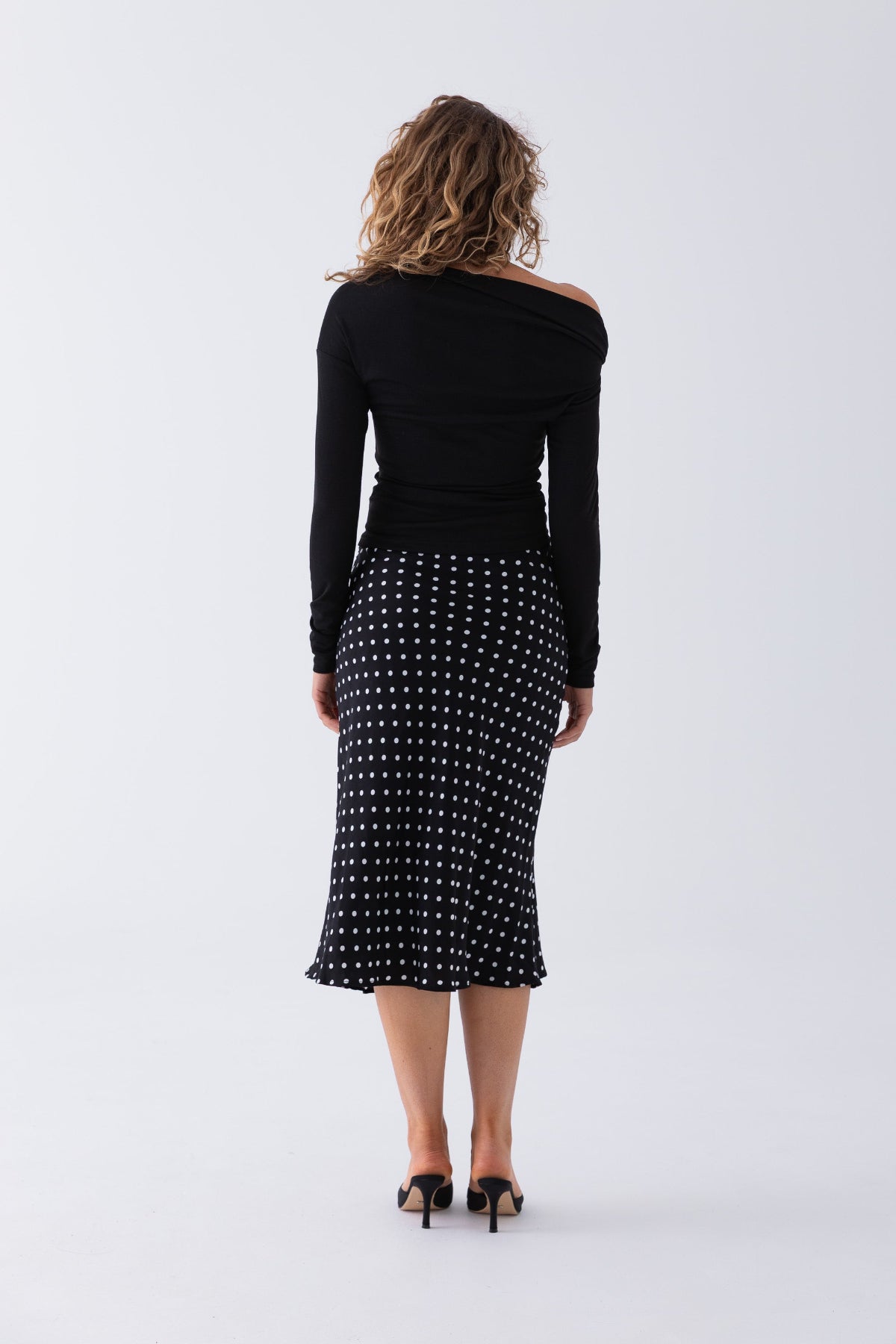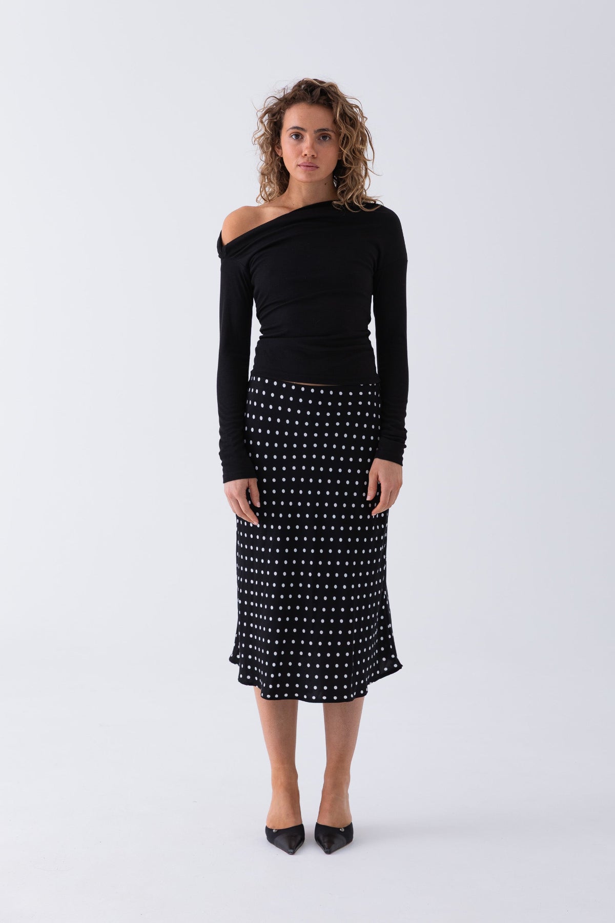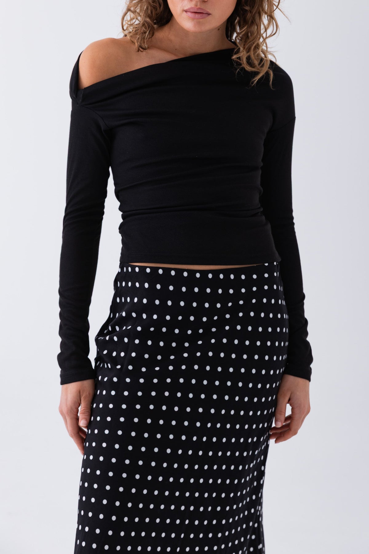 A lightweight top with an asymmetric off-shoulder neckline. The Odetta is designed with soft draping through the body. Perfect with wide-leg pants.