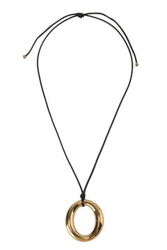 The Pebble Necklace features a polished silver pebble pendant suspended on a sleek leather adjustable cord necklace.