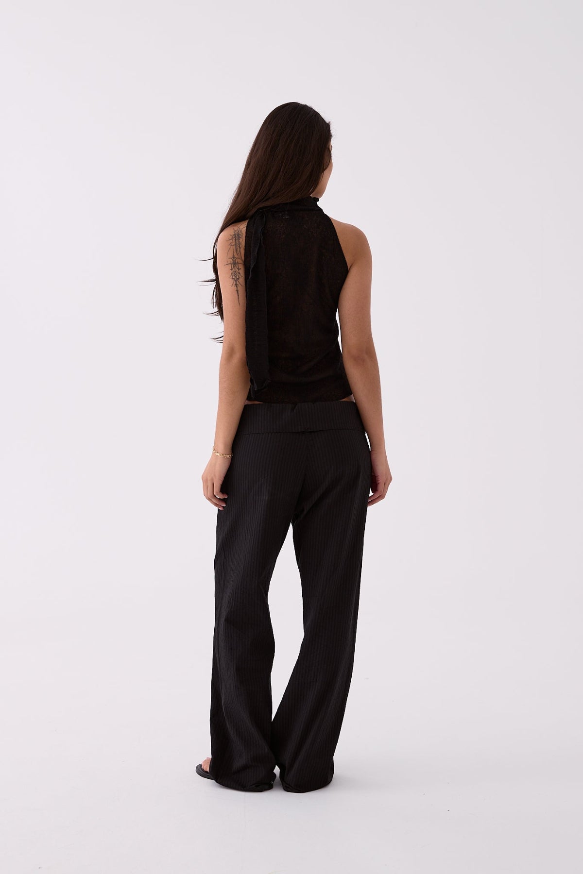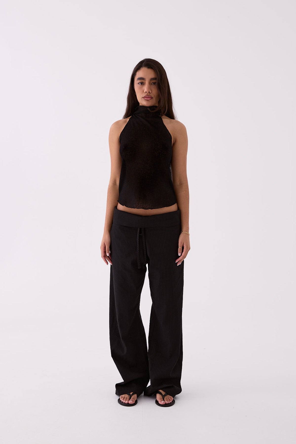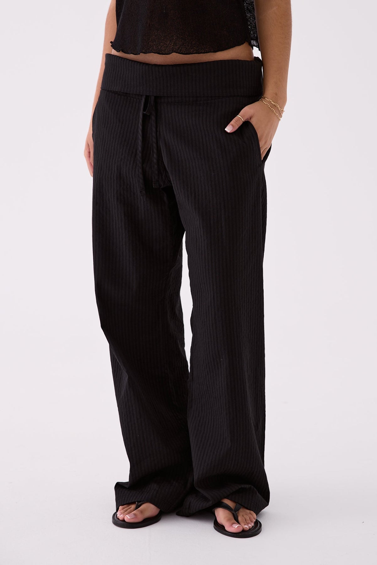 The Remi Pants feature a soft linen fabrication, fold-over waistband with tie detail, and a wide-leg silhouette that drapes effortlessly. Designed for elevated comfort, perfect for styling with simple tanks or oversized shirting for a laid-back, modern look.