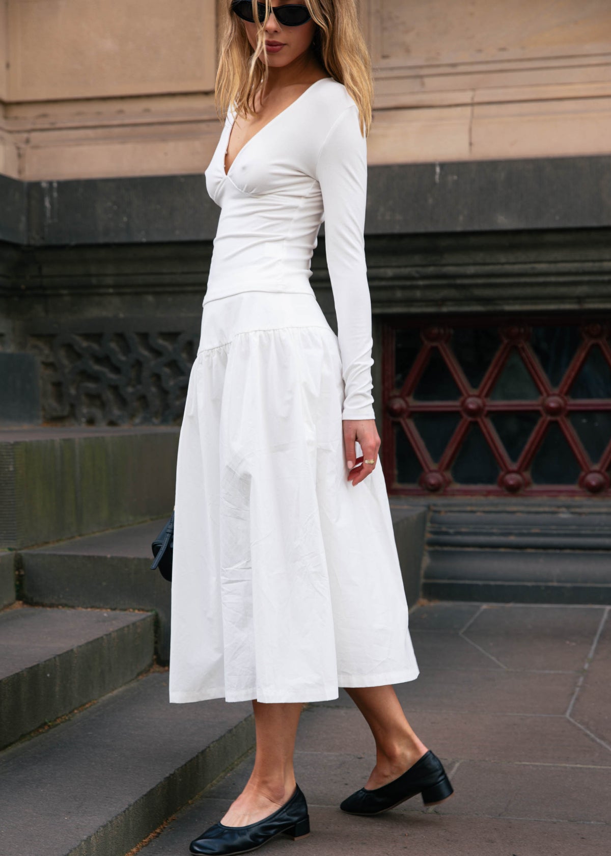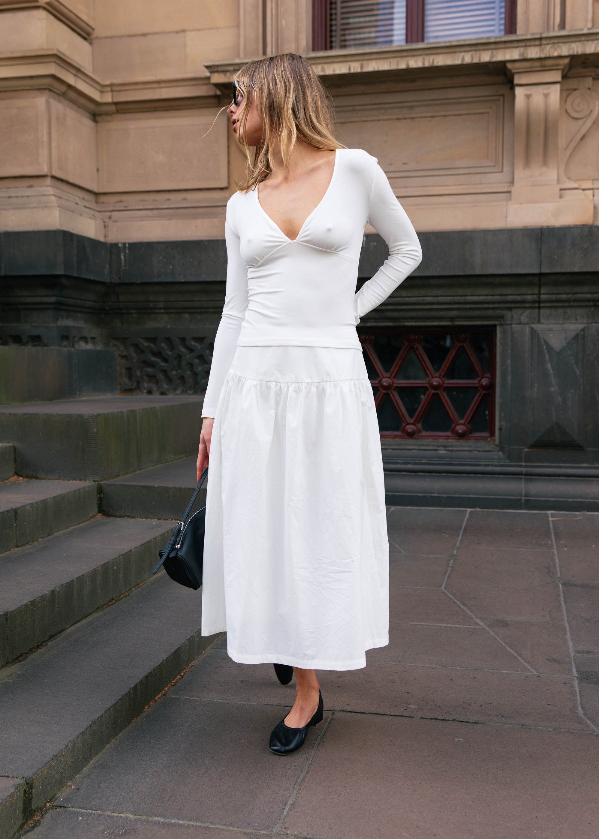 V Neck Long Sleeve Top - White